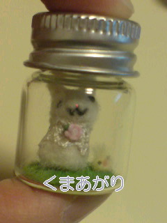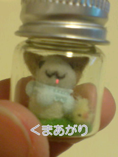 瓶の高さは6cmくらい。うめちゃんの大きさは3cmくらいです。